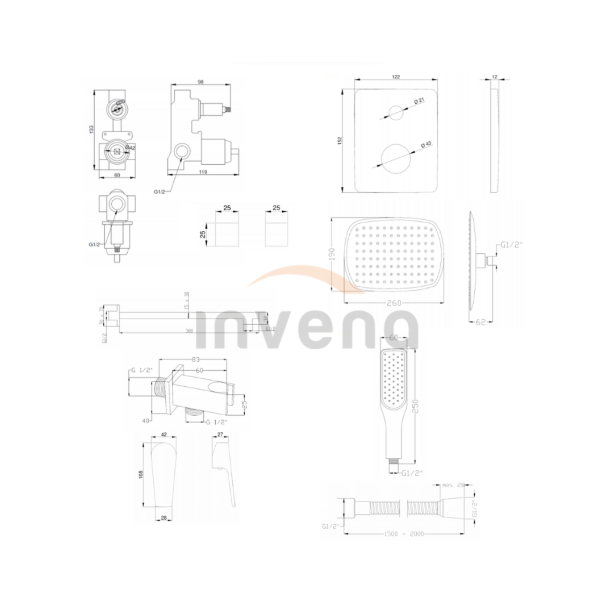 - Duș tip ploaie: dreptunghiular, 25 x 19 cm, abs, anti-calcar