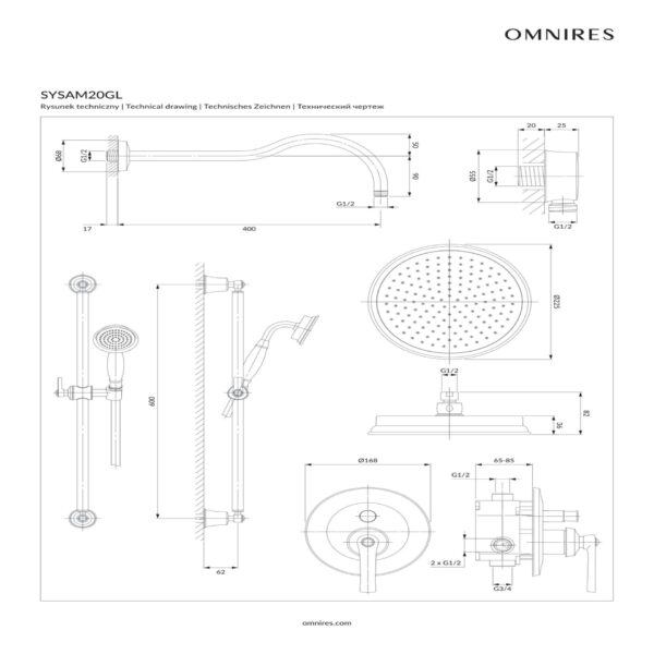 - Cap de dus din alama (WGARMANCE), dimensiuni: ø22.5 cm