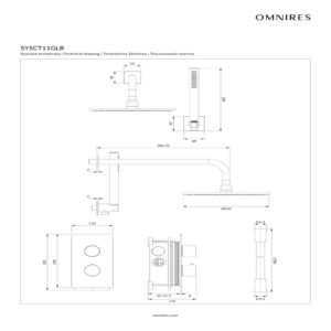 Sistem de dus incastrat cu baterie termostata Omnires Contour auriu periat si para cu 1 functie