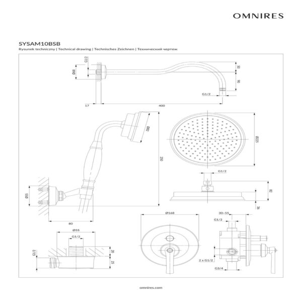• Cap de dus din alama (WGARMANCE), dimensiuni: ø22.5 cm