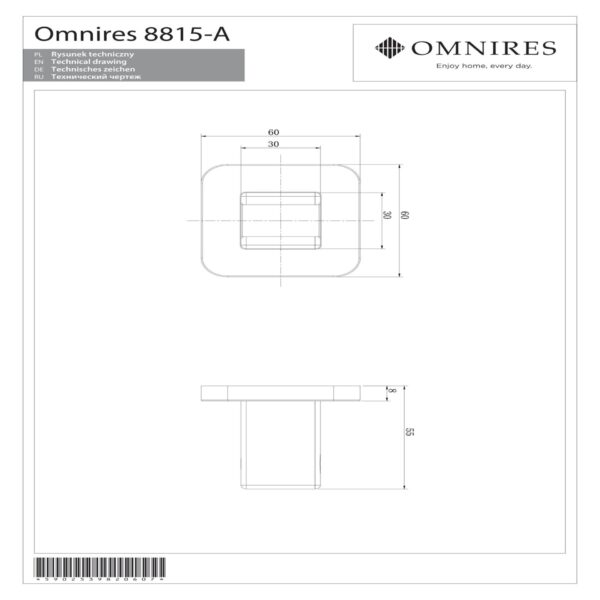 - Dimensiuni rozeta: 6 x 6 cm, distanta fata de perete: 5,5 cm