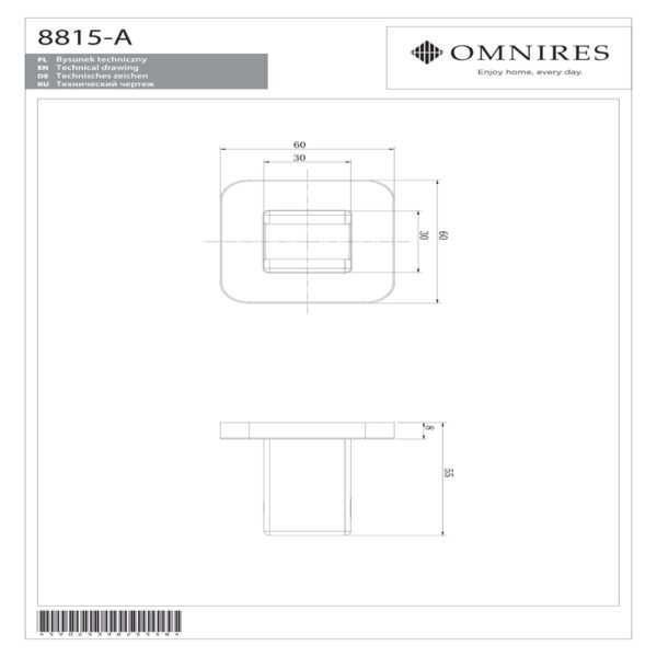 - Dimensiuni rozeta: 6 x 6 cm, distanta fata de perete: 5,5 cm