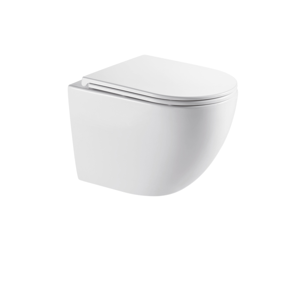 Vas de toaleta suspendat Invena Astri cu sistem de spalare silentioasa QFS si capac cu inchidere silentioasa