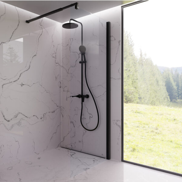 O cabină de duș de tip walk-in de la producătorul polonez Invena este o opțiune pentru aproape orice baie. Este, de asemenea, potrivit pentru băile mici din blocurile de locuințe, care vor adăuga luminozitate și vor mări optic baia. Cabina este fabricată din sticlă transparentă cu grosimea de 8 mm. Sticla a fost tratată cu un strat de sticlă lucioasă care previne calcarul și petele, menținând astfel un aspect strălucitor pentru mai mult timp. Absența diferitelor colțuri greu accesibile facilitează curățarea. Elementele negre ale cabinei contrastează perfect cu sticla. Cabina este disponibilă în cinci dimensiuni.