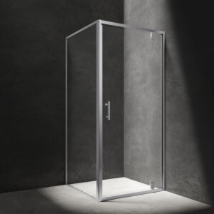 Cabina de dus patrata cu usa cu balamale Omnires Bronx crom transparent 90x90cm